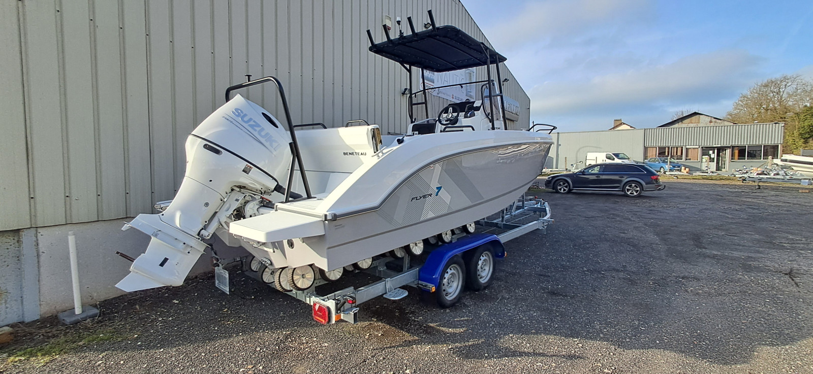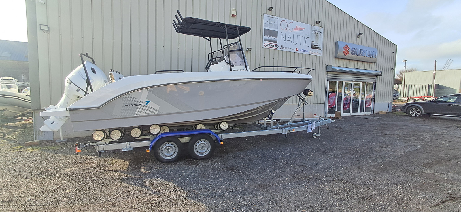 Vend Beneteau Flyer 7 spacedeck pilot edition avec moteur Suzuki 200cv DF200APX ensemble neuf milésime 2026 jamais mis a l'eau garantie 3 ans.