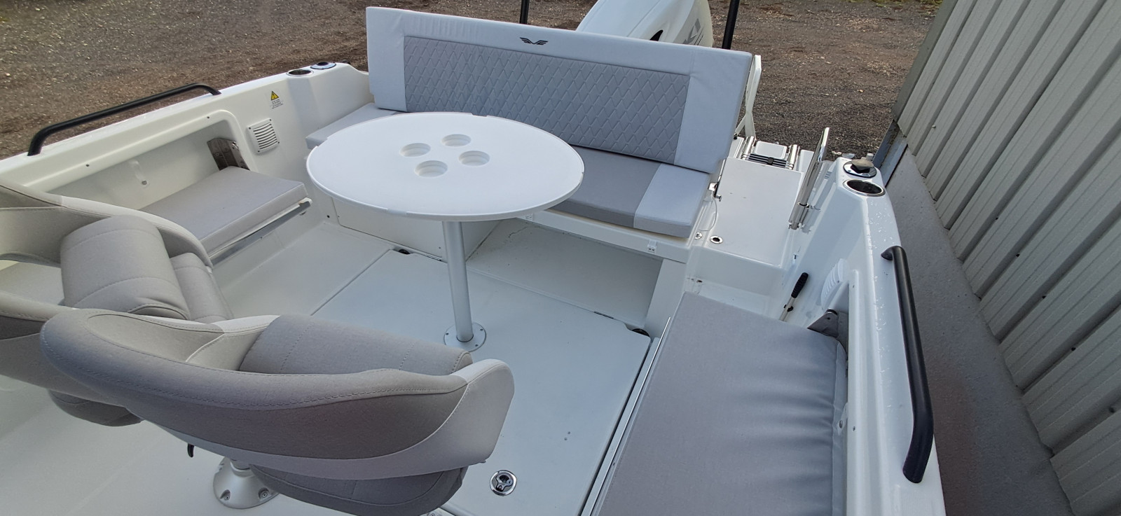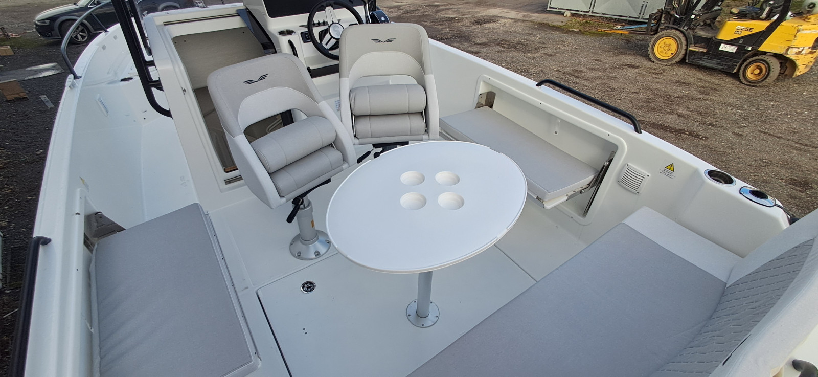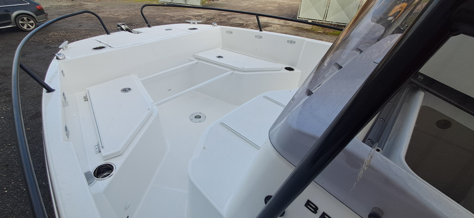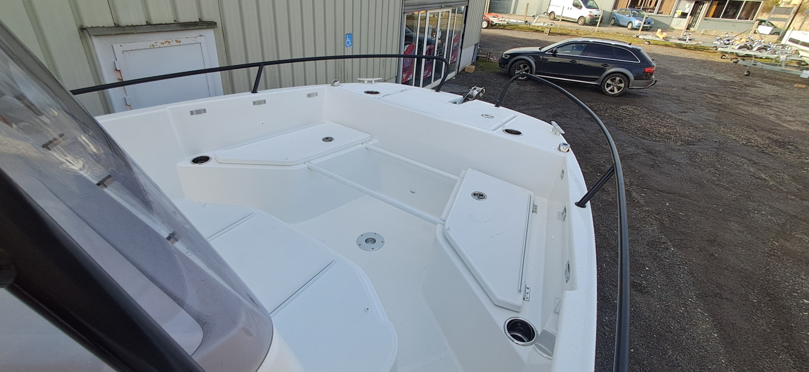 Bateau ayant un comportement marin exceptionnel, de plus il est tres polyvalent avec un cockpit tres grand et une belle circulation car on peut aisément faire le tour de la cabine et obtenir également une grande place a l'avant du bateau ce qui rend les parties de peche tres facile et agréable, il est équipé également de deux bains de soleil l'un sur la partie avant et l'autre a l'arriere avec la banquette qui se transforme en un bain de soleil pour faire le plein de confort lors des balades en famille et des pic nic, d'une grande cabine et de nombreux coffres de rangement, il est homologué pour 8 personnes.