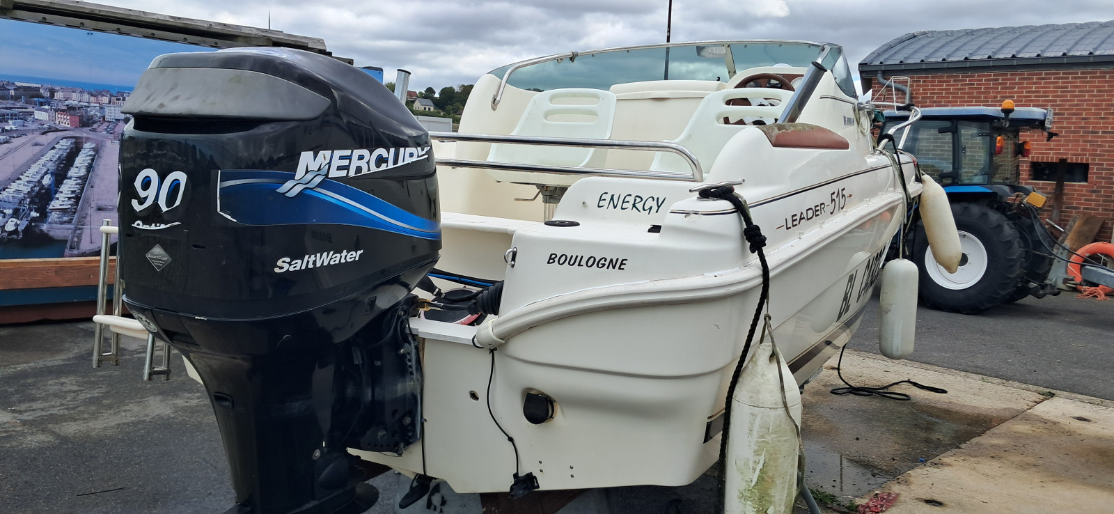 Vend JEANNEAU LEADER 515 avec moteur Mercury optimax 90cv 2 temps injection et remorque de route PAM ensemble mis en circulation en 2005.