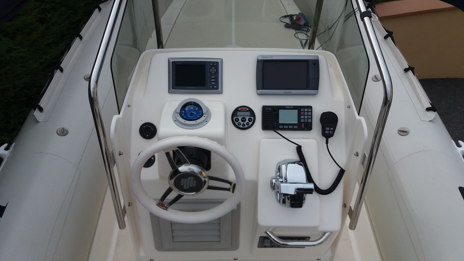 Electronique combiné gps sondeur GARMIN gpsmap 720s avec carte france entiere, VHF fixe navicom RT-750, compas encastré et radio marine